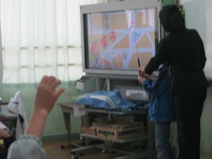 5年生の研究授業がありました。「面積の求め方を考えよう」の1時間目の授業でした。今まで学習した「長方形」や「正方形」の面積の求め方を使って他の図形の面積は求められるのかな?という疑問から出発して,三角形の面積を直角三角形を二つあわせたり,切って長方形を作ったりして考えました。