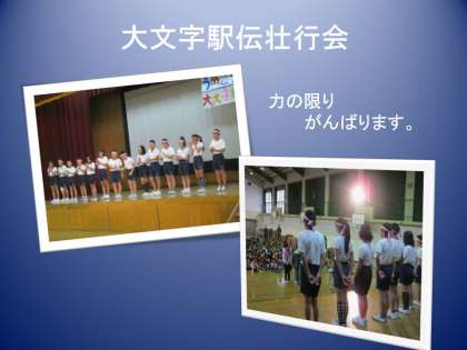 梅小路タイムに引き続き,大文字駅伝の壮行会が児童会主催で行われました。「何区を走るか」「どんな走りをしたいのか」を一人ずつ話しました。