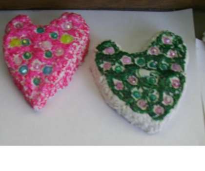 ねちゃねちゃして気持ち悪いと言いながらこねていた子どもたちですが,しっかり混ぜ合わせて手作り紙ねんどができあがりました。出来上がった紙ねんどを思い思いの形に整えながら,ビーズやモールなどで飾り付けをしました。