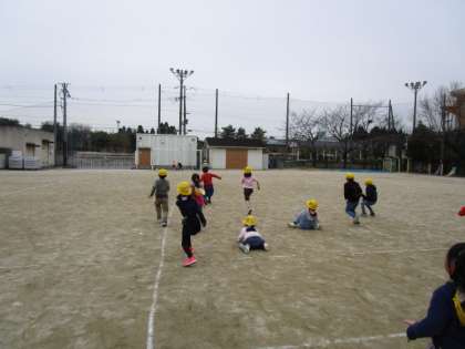 追いかける方も,逃げる方も広々として運動場を力いっぱい走って走って,走って・・・。