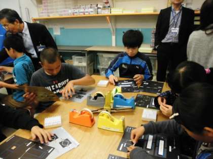 9日(木)に6年生が「京都モノづくりの殿堂」の学習へ出かけました。島津製作所の方の説明を聞きながら,一人ひとりが衛星型分光器を製作しました。完成したもので実際に蛍光灯や白熱灯を眺めて,その違いに声をあげていました。その後,各企業のブースでもいろいろな体験を通して学習を深めました。