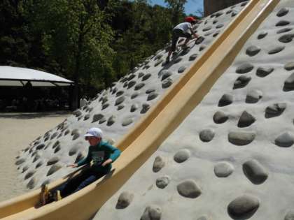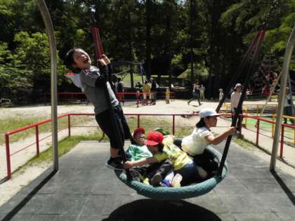 お弁当を食べた後は,待ちに待った「子どもの楽園」での自由時間でした。迷路や滑り台,ブランコで思いっきり遊びました。帰るころには汗びっしょりの子どもも!京都駅から学校までの道のりがいかに長〜く感じたことか。でも,笑顔いっぱいの楽しい遠足となりました。