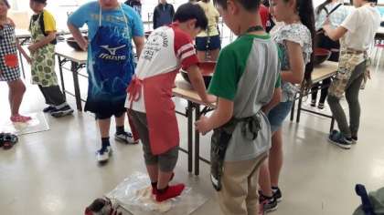 6年 修学旅行 うどん作りに挑戦