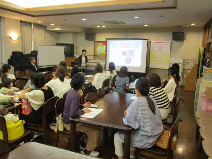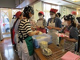 まず栄養教諭の先生から学校給食についての話をしました。その後保護者の皆様は,給食室の見学や実際に給食の配膳をして,当日児童が食する献立を食べていただきました。また1年生の給食の様子を参観していただきました。