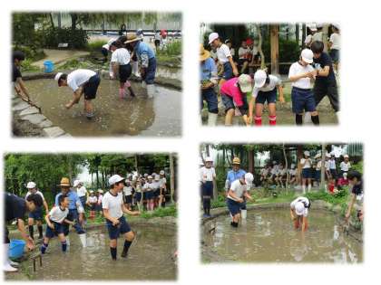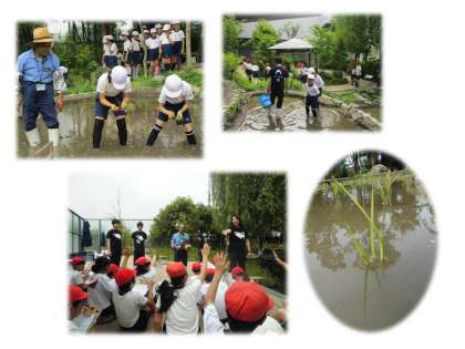 楽しみにしていた京都水族館での田んぼの学習です。田んぼの中に入って,稲をうえました。とても貴重な経験ができました。