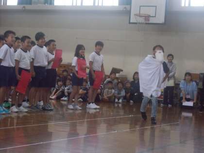 神様の登場で1年生の入学をお祝いしました。5年生は