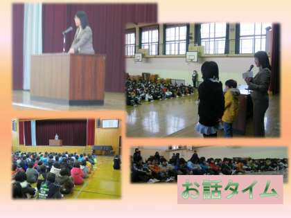 9時から体育館に集まって「お話タイム」を行いました。