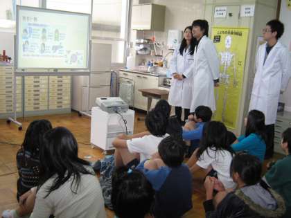 5年生には,皆が使ったことのある「おくすり」についての話をしていただきました。普段病院でもらった薬をなんとなく飲むことがほとんどだと思いますが,薬にしっかり目を向けてもらいたいとの願いを込めてこのテーマにしました。クイズをしながら楽しく学び,薬を正しく使うことの大切さを感じ取ってくれたようです。