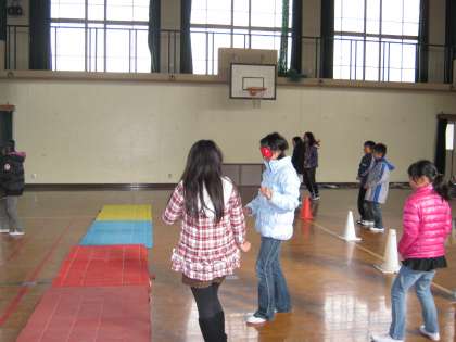 総合で「まちのちびっ子メッセンジャー」の学習を始めました。自分たちの住む梅小路のまちを,いろいろな人の立場に立ってもう一度見直し,良いところや改善点を考え,伝えていこうという学習です。先日,目の不自由な人にとって梅小路の町は暮らしやすいのかということを考えるために,アイマスク体験をしました。アイマスクをしてマットやカラーコーンなど障害物の置いてある10mほどの距離を歩くという簡単な体験でしたが,子どもたちは,「とても不安だった。」「どこを歩いているか全然わからなかった。」など,普段とは全く違う感覚にとても驚いていたようです。そして,「まちの中には,目の不自由な人にとって,危険がいっぱいあると思う。」と今まで気付かなかったことに目を向けていた子もたくさんいました。学習を進める中で,このような体験をいろいろしていき,自分たちの町についてじっくりと考えていこうと思っています。