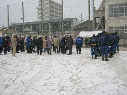 あいにくのお天気でしたが,緊急時に備えての避難訓練をしました。