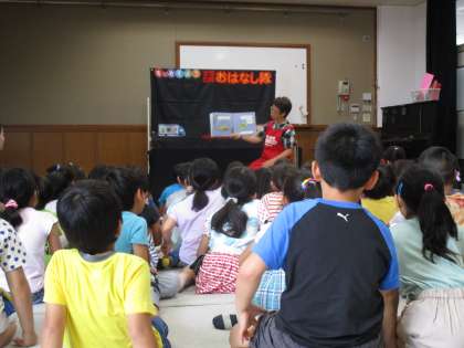 児童は,面白いお話の世界に引き込まれ,目を輝かせながら楽しそうに聞いていました。