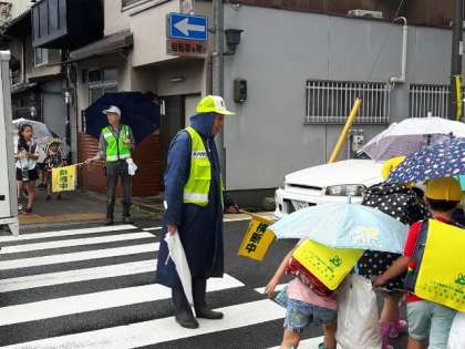 毎朝,ボランティアの方が子どもたちの登校にあわせて,いろいろな場所に立ってくださっています。