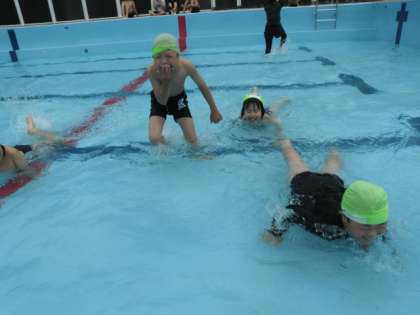 今日は今年度初めての水慣れの学習がありました。一年ぶりのプールにみんな大興奮。早く!早く!!と全身が訴えていました。ルールを一つ一つ丁寧に確認した後,いよいよ水の中へ。今週までは低水位なので,ワニさん歩きをしたり水のかけっこをしたりしました。来週からはいよいよ本格的な水泳学習です。お天気が続きますように!