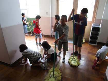 本日は,フレンドリー掃除がありました。縦割りで清掃活動です。6年生が掃除の仕方など低学年にアドバイスをしながら進めていました。教えてもらった通りに低学年の児童は一生懸命に掃除をしていました。