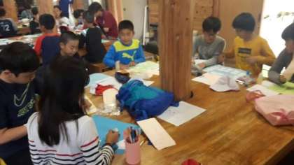 4日間書き貯めてきた、友達のよいところ見つけカードを 一枚にまとめます。
