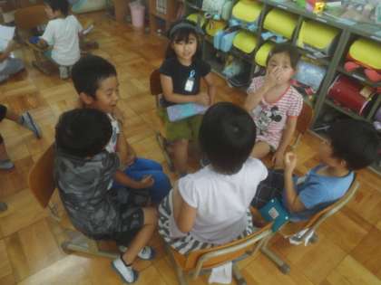 参観日に観てもらう音読発表会の打ち合わせの風景です。自分たちで言葉を付け足したり動きを考えたりしていきます。ぜひ参観日に観に来てください!
