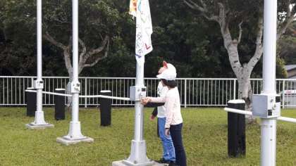 所長さんから、台風の影響で桜の花が咲いていることを聞いて、