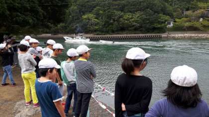 深谷水道を漁船が通って行きました。