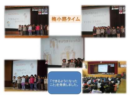 「できるようになったこと」の発表をしました。失敗したりできなかったときには,どうしようと思うこともあったこどもたちですが,何度も挑戦して「できるようになった」ことを自信満々に発表しました。