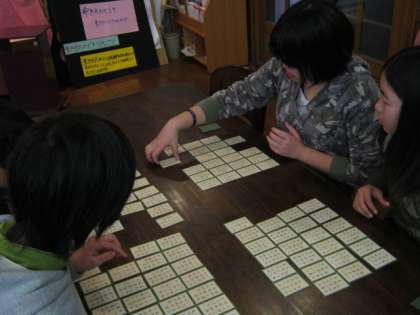 6年生では,1年間,五色百人一首に取り組んできました。少しずつですが、自分の得意な札が見つかり,上の句で取れることも多くなりました。今日は,地域の古谷孝造さんに来ていただき,百人一首大会を行いました。古谷さんが読んでくださる声に合わせて,真剣な目で取り組んでいました。いつもと雰囲気の違う百人一首で,楽しみながら体験することができたようです。