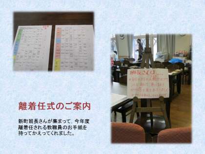 新町班長が来て,離着任式のご案内のお手紙をくばってくれます。