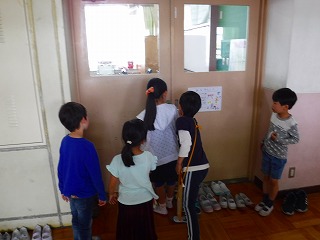 1年生の学校探検を行いました。2年生が1年生をリードして,案内をしながら進んでいました。「次どこいきたい?」「何か聞きたいことある。」などとても優しく親切に1年生に話しかけていました。