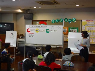 本日,ランチルームで3年生の栄養指導を行いました。栄養教諭の田代先生が体に必要な栄養について話をしてくれました。好き嫌いなくしっかりと栄養のバランスを考えて食し,心身共に丈夫で健やかに成長してほしいと思います。