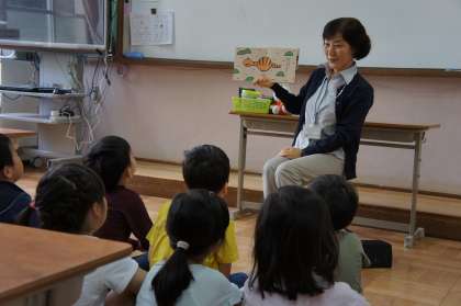 今日は,「なぜ『ミッフィータイム』というのか」というお話をしていただいた後,絵本の読み聞かせをしていただきました。