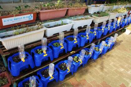 「先生〜!アサガオの芽,出てきたよ!」