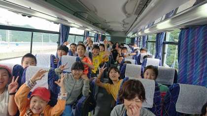 バスレクがみんなを盛り上げてくれます。みんな楽しんでいます。いつもの元気な6年生になりました。