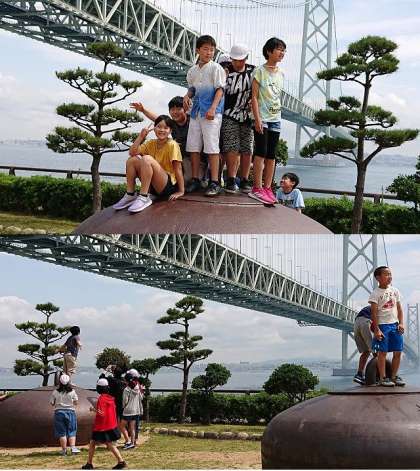 途中の休憩場所で,記念写真のあとはフリータイムです。少しの時間でもみんなめいっぱい楽しんでいます。