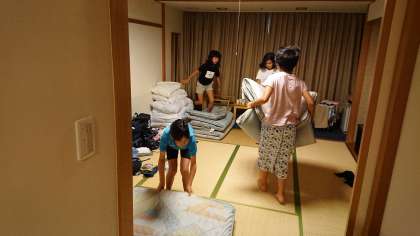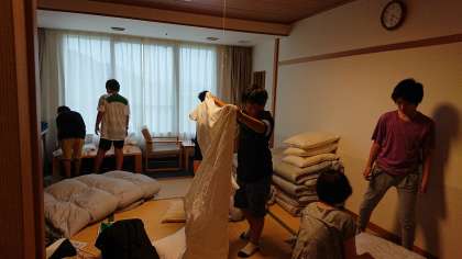 2日目の朝を迎えました。空は曇り空ですが,みんな元気に起床し,身支度を整えました。