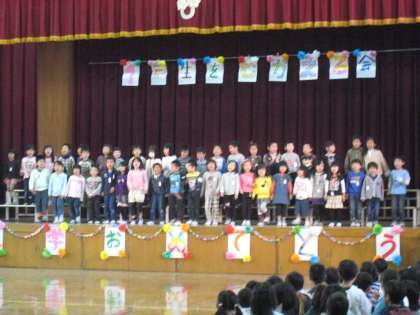 各学年からの出し物は,バラエティに富んだプログラムでした。歌,プロジェクターの映像を使った「ともだち」の絵本の群読,リコーダーの演奏,みんなの約束の劇などを,1年生は楽しんで見ていました。全校でのゲーム「友だち集まれ」では,様々な学年の人と自己紹介ができて友だちが増えました。梅小路小学校のみんな仲良くこの1年間過ごしましょう。
