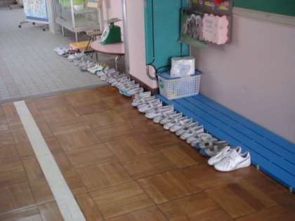 身体計測の保健室前の上靴は,どのクラスもきれいに並べていました。