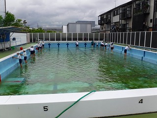 3時間目に6年生が,プール掃除をしてくれました。黙々と一生懸命にプールの壁や,腰洗い槽等の底をタワシできれいにしてくれました。素晴らしい仕事っぷりでした。