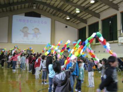 3時間目に1年生を迎える会がありました。三年生は、絵本「ともだち」(谷川俊太郎)の言葉を群読しました。3年生らしい元気のよい声でお祝いのメッセージを伝えました。また、入場・退場のアーチ係の役目も果しました。