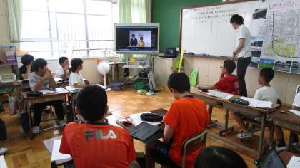 この時間は自分たちの発表の様子をタブレットで確認して改善しています。