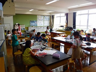 本日,小中連携の取り組みで,中学校の先生が,梅小路小学校へ授業参観に来られました。梅小路小学校の授業で大切にしていることについて見て頂きました。