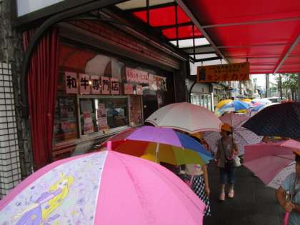 広い公園やおいしそうなコロッケを売っているお肉屋さん,かっこいい車がたくさんある車屋さんなども見つけました。