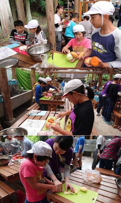 チームワークを大切にして野外炊事に挑戦です。メニューはカレーライス。
