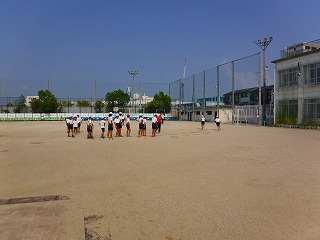 朝早くから,陸上部の子どもたちが練習に来ていました。暑い中,腕をしっかりと振って全力で走り頑張っていました。