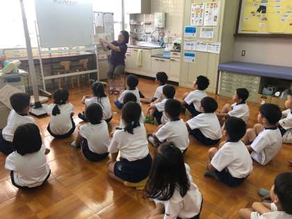 また,絵本の読み聞かせを通して,身体を作るためには「食事」「睡眠」「運動」などの毎日の習慣がとても大切だということを教えていただきました。「成長ホルモンは,夜寝る時間にしか出ない」ということが分かると,子どもたちは「じゃあ絶対に9時までに寝なきゃ!」と,はりきっていました。