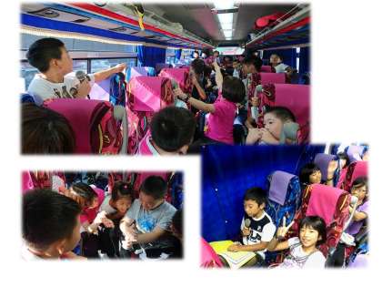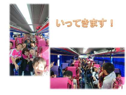 バスの中では,サプライズ!岡見先生から声の激励メッセージがありました。