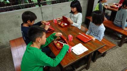 パン、牛乳、カレー味のポテトサラダ、ソーセージ、ゆで卵