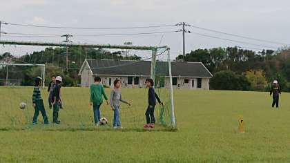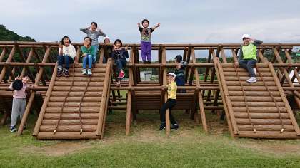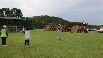 スポーツを選んだ子どもたちは、芝生広場で,アスレチックで遊んだり,アッテビーをしたり,サッカーボールでハンドベースボールをしたり,のびのび遊びます。