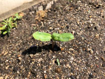 3年生の花だんにまいたヒマワリのたねが芽(め)を出しました。