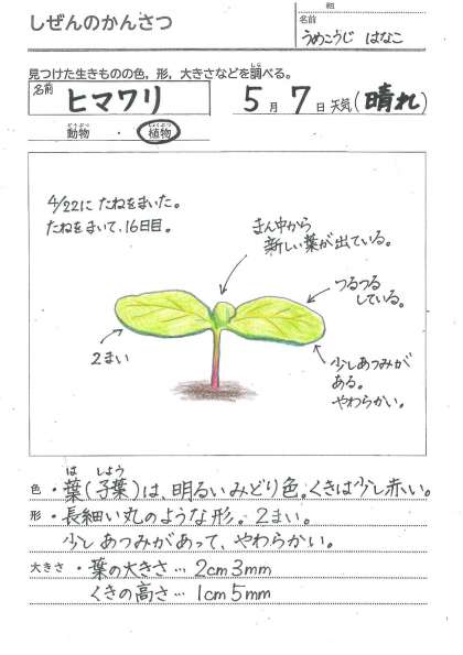 理科「しぜんのかんさつをしよう」〜ヒマワリの芽が出ましたよ!〜