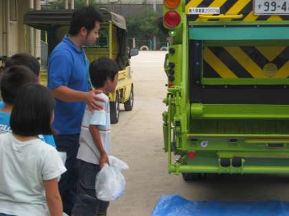また,パッカー車へのごみの積み込み体験もさせていただきました。