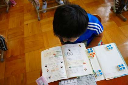 ぴったりわりきれない時には,どうしたらよいのかな?数図ブロックを使って考えたり,考えたことを友だちに伝えたりして,学習を深めています。