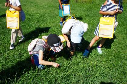 草むらや水辺にいる虫などを見つけては,「何をしているのかな?」と観察することができました。これからさらにくわしく調べていきましょう。